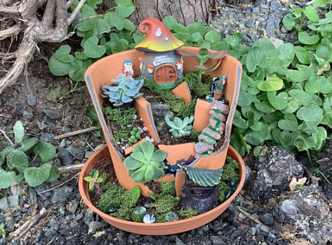 Each ticket includes all the materials needed to assemble a fairy garden-a terracotta pot, succulents, figurines, & dirt.