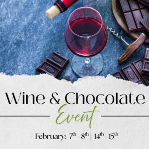 CHOC AND WINE PAIRINGS (FEB 7,8 & 14, 15) On The Berks County Wine Trail CHOC AND WINE Pairings on the Berks County Wine Trail This ... 14 - 15 Feb 12:00 PM - 5:00 PM Ridgewood Winery on Daffodil Hill Farm215 Township Line Road, Bechtelsville, Pa 19505